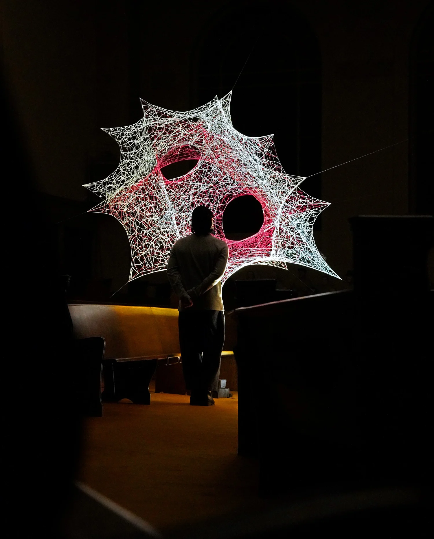 Swilk explora tecelagem e tecnologia em instalações vivas