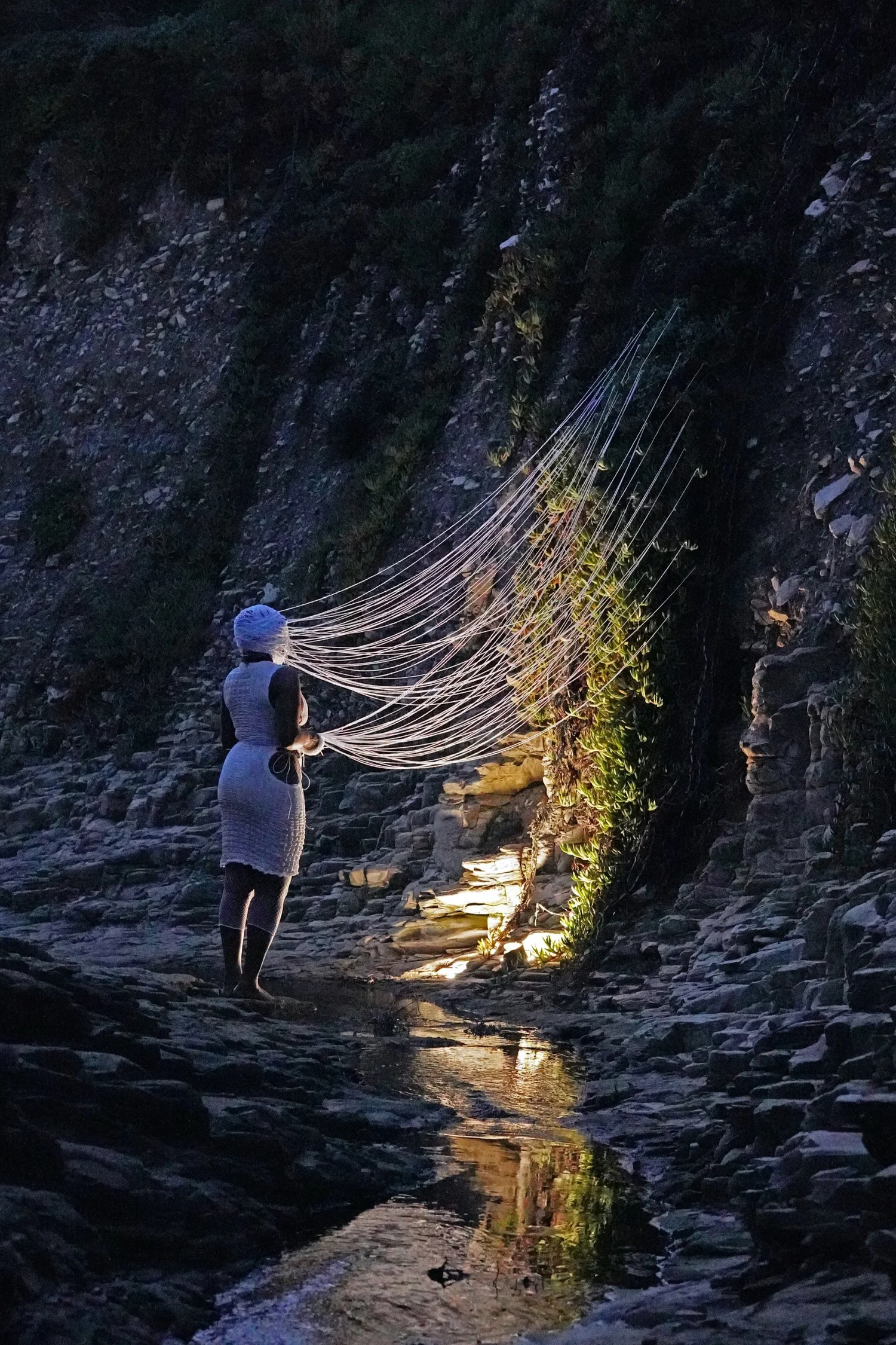 O projeto apresentado no Internet Archive, em 2024, sintetiza essa abordagem. A instalação foi programada para reagir a interações com arquivos digitais, ativando movimentos físicos nas estruturas têxteis conforme usuários acessavam ou manipulavam esses dados. O resultado é uma obra que traduz informação em comportamento material.