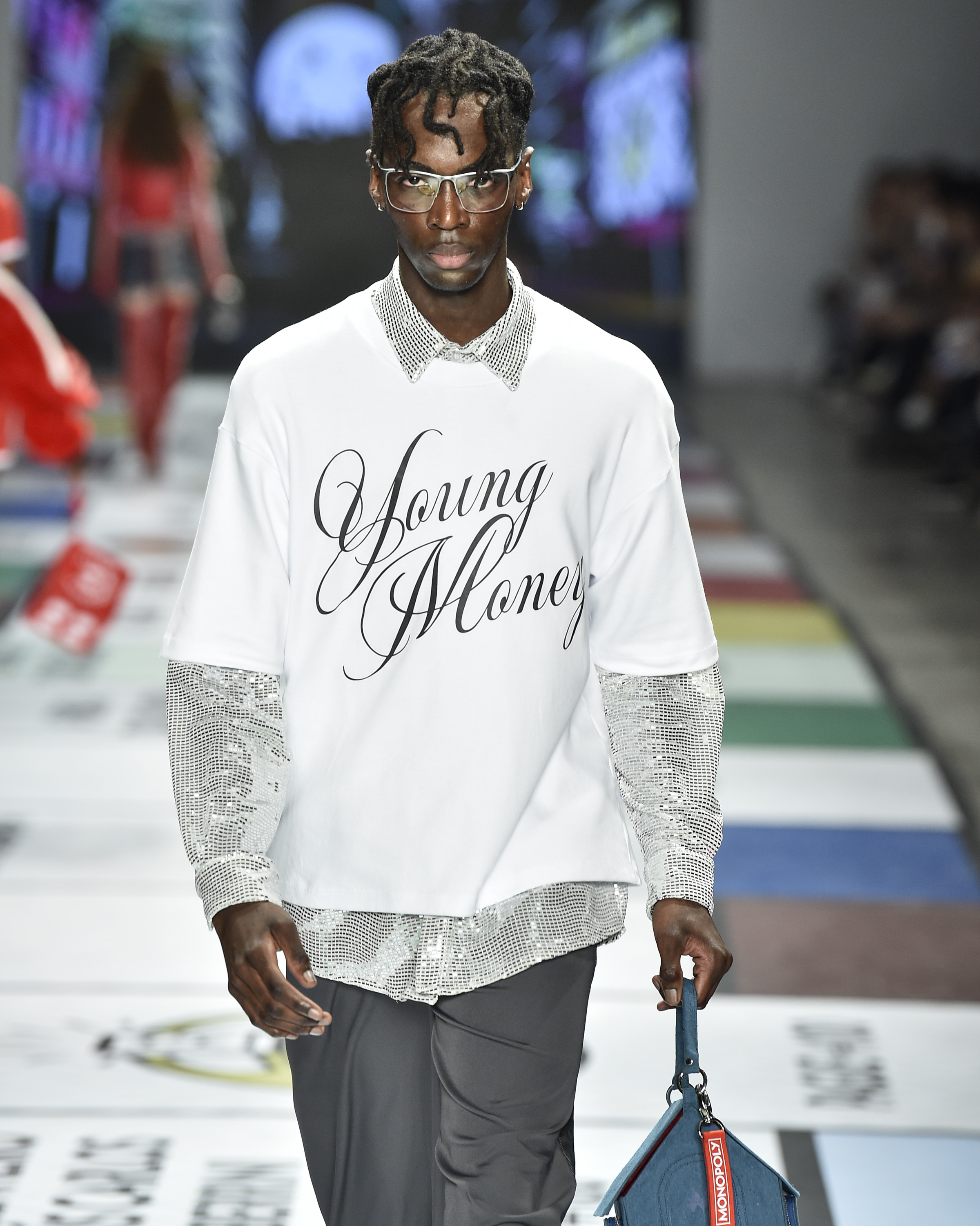 Com a coleção “MONOPOLY: YOUNG MONEY!”, o designer propõe uma crítica visual e conceitual ao capitalismo tardio e às estruturas de poder que moldam o imaginário da moda.